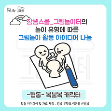 분류 전체보기1894 [참쌤스쿨_그림놀이터]그림놀이 #8. 행운을 빌어요(경쟁) 다운로드: https://blog.naver.com/playwithdrawing_cs/221267631751 2018. 5. 7. 참쌤스쿨 아티버셜 - 어버이날 팝업카드 참쌤스쿨 미술모임 - 아티버셜에서 어버이날 팝업카드 SET를 만들었어요! 대박! 너무너무 멋지네요. 2018. 5. 3. [참쌤스쿨_그림놀이터]그림놀이 #7. 순서대로 연결해(경쟁)대결 다운로드: https://blog.naver.com/playwithdrawing_cs/221267622143 2018. 5. 3. [참쌤스쿨_그림놀이터]그림놀이 #6. 복불복 캐릭터(협동) 다운로드: https://blog.naver.com/playwithdrawing_cs/221259854292 2018. 5. 3. 교과별 상징 그림 그리기 사용방법은 9월에 나올 책과 10월에 나올 연수에서...! 그림 도움 : 참쌤스쿨 배준호, 유명선, 서휘경, 김지원, 송가람, 김보미선생님 2018. 5. 1. 남북정상회담 인포그래픽 2018 정상회담 기념으로 만들어봤습니다. 2018. 4. 27. 알쓸신비(12)-얘들아, 부모님은 체크카드를 사용하시니? 신용카드를 사용하시니? 안녕하세요:) 벌써 일주일의 절반을 향해 달려가고 있습니다! 어제까지 날씨가 흐리고 비가 왔었는데 오늘은 진~~~~~~~~~짜 맑은 하루라고 합니다. 심지어 초하루?! 날씨를 보인다는데요! 이런 날씨일수록 감기 조심하시기를 바래면서 알쓸신비 12번째 주제! [체크카드와 신용카드의 차이점]을 알려드립니다! 아하~ 체크카드와 신용카드의 차이점은 '결제의 순서'이네요! 아이들한테 한번 물어보아야겠어요. "부모님은 체크카드를 사용하나요? 신용카드를 사용하나요?" 만약, 체크카드와 신용카드의 차이점을 모른다면... ↑를 살포시 보여주며... 알려주기?! 아이들의 경제 관념을 쑥쑥 키워주세요~!!! 오늘 하루도 응원할게요♥ 제작: 참쌤스쿨 4기_김민경 선생님 더 많은 자료는 참쌤스쿨_비주얼씽킹 연구회 블로그로 오세.. 2018. 4. 25. 알쓸신비(9)- 양, 막창, 곱창, 대창 어디에 있을까요?? 안녕하세요:) 지금쯤이면 저녁식사를 준비하시거나 드시고 계시겠네요 *-* 무엇을 드시고자 하시나요?.? 혹시 막창? 곱창?을 드시는 분 계실까요? 오늘의 알쓸신비 (8) 주제는 [양, 막창, 곱창, 대창의 차이점]입니다. 벌써부터 군침이 도는데요 *.* 집중해서 살펴보실까요?~~~ 와우 앞으로 알고 먹는 재미가 솔솔하겠어요 *-* 소를 쉽고 재미있게 따라그릴 수 있는 학습지는비주얼씽킹 연구회 블로그에서 다운받으실 수 있어요!(클릭 클릭!) https://blog.naver.com/e-visual/221260485885 2018. 4. 24. 비주얼씽킹 끝판왕 출간 드디어 마지막 작업, 프롤로그 웹툰까지 끝났어요. 이제 드디어 나오나요 ㅠㅠㅠ 참쌤의 비주얼씽킹 끝판왕김차명 저비주얼(Visual)보다는 씽킹(Thinking)이다! -비주얼씽킹의 개념과 방법, 실천까지 모두 담은 비주얼씽킹의 ‘끝판왕’ 비주얼씽킹에 관한 책이나 자료가 쌓여 그 개념이 조금씩 자리 잡고 있지만, 아직도 비주얼씽킹이라 하면 ‘그림 그리기’를 먼저 떠올리는 사람이 많다. 그래서 ‘참쌤의 콘텐츠 스쿨’에서 비주얼씽킹의 개념과 방법을 알리고 여러 선생님이 개성을 발휘할 수 있게 돕고 있는 참쌤, 김차명 선생님이 나섰다. 저자는 비주얼씽킹이란 미술을 잘해야 하는 것도, 아니고 그림에 소질이 없어도 된다고 이... YES24 : https://goo.gl/w5xbtu 알라딘 : https://goo.. 2018. 4. 24. 참쌤스쿨_그림놀이터]그림놀이 #5. 도형그림빙고(친교) 다운로드: https://blog.naver.com/playwithdrawing_cs/221259844138 2018. 4. 23. [참쌤스쿨_그림놀이터]그림놀이 #4. 네 생각 내 생각(경쟁) 다운로드: https://blog.naver.com/playwithdrawing_cs/221255178717 2018. 4. 23. 2017 장애이해 웹툰 6가지(후반기) - 특수학교 설립관련 장애인먼저실천운동본부와 매년 함께 만드는 장애이해교육 관련 포스터입니다. 원본 다운로드 받으시면 됩니다. 2017 전반기 : http://chamssaem.tistory.com/4152016년 : http://chamssaem.tistory.com/3582015년 : http://chamssaem.tistory.com/324 2018. 4. 20. 2017 장애이해 웹툰 8가지 참쌤스쿨과 장애인먼저 실천운동본부와 함께 만들었습니다. 고화질 이미지 첨부합니다. 2015버전 : http://chamssaem.tistory.com/324 2016버전 : http://chamssaem.tistory.com/358 2018. 4. 20. 2016 장애이해 웹툰 6가지 참쌤스쿨과 장애인먼저 실천운동본부와 함께 만들었습니다. 1화 - 서로 함께라면 불안하지 않아요2화 - 너무 빠른 친구가 있어요3화 - 다양한 친구들과 함께 어울려요4화 -친구를 배려로 사랑해요5화 - 힘내라 우리오빠!6화 - 아름다운 다름 고화질 이미지 첨부합니다. 2015버전 : http://chamssaem.tistory.com/324 2017버전 : http://chamssaem.tistory.com/415 2018. 4. 20. 2015 장애이해 웹툰 5가지 참쌤스쿨과 장애인먼저 실천운동본부와 함께 만들었습니다. 1화 - 지적장애 VS 정신지체 올바른 용어를 사용해요2화 - 장애인 VS 장애우 올바른 용어를 사용해요3화 - 차이와 차별?4화 -우리 생활에서 잘못된 표현5화 - 세상에 필요 없는 사람은 아무도 없다. 고화질 이미지 첨부합니다. 2016버전 : http://chamssaem.tistory.com/358 2017버전 : http://chamssaem.tistory.com/415 2018. 4. 20. 문방국민학교 일기예보 4화(콘티) 경기도교육청 웹툰 문방국민학교 일기예보 4화 http://goedu.goe.go.kr/ 2018. 4. 19. 문방국민학교 일기예보 3화(콘티) 경기도교육청 웹툰 문방국민학교 일기예보 3화 http://goedu.goe.go.kr/ 2018. 4. 19. 알쓸신비(11)- 명태야! 