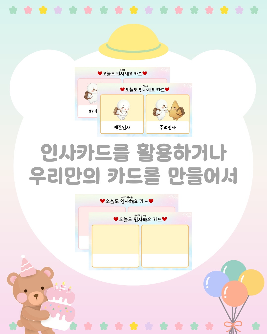 4️⃣유치원 왔을 때, 집에 갈 때 원하는 인사카드를 붙이고 인사한다.